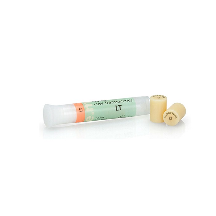 Piezas en bruto de litio-disilicato-cerámica de vidrio para la técnica de prensado. El revestimiento individual se realiza con la cerámica de revestimiento IPS e.max Ceram y la individualización, con los maquillajes IPS Ivocolor.