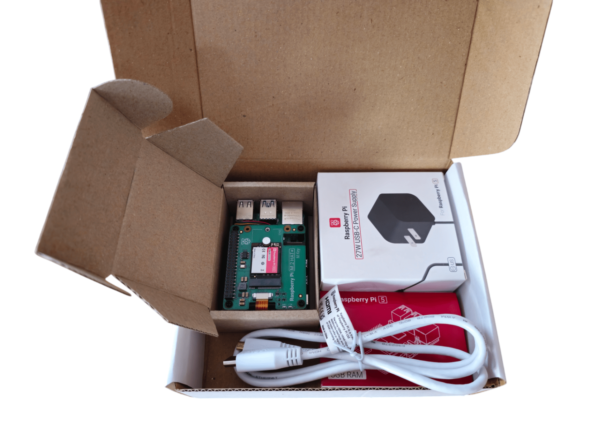 - Alimentación original Raspberry Pi 5 (27W, USB Tipo-C): Alimentación estable y confiable.